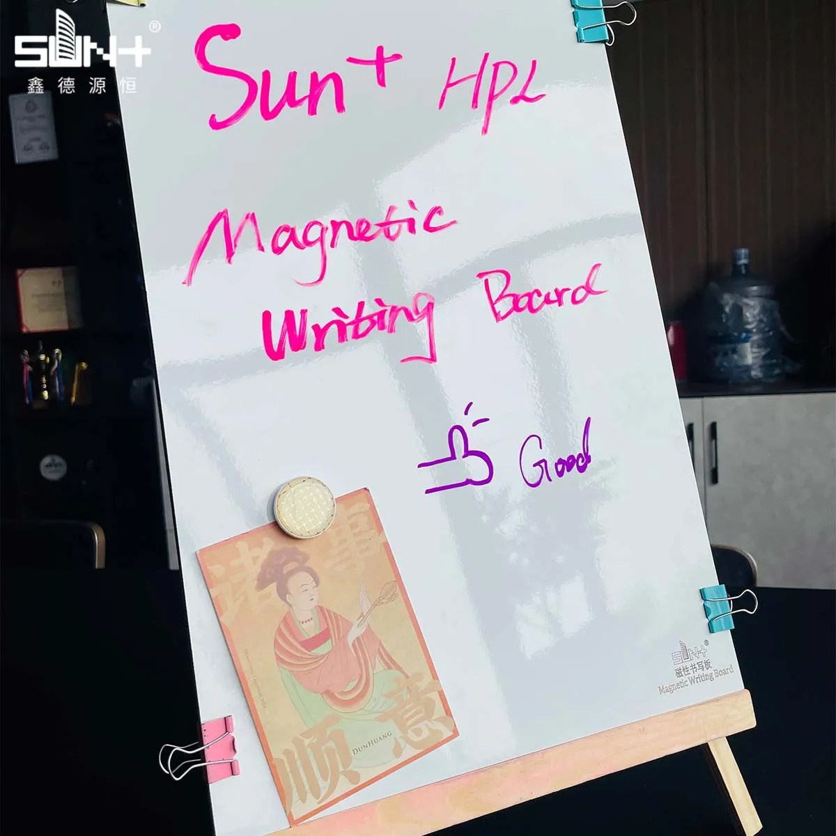 Medium UseIndispensable for design studios, advertising agencies, and creative teams who need flexible wall surfaces for mood boards, design iterations, and client presentations. Designers can sketch concepts directly on the surface with markers while pinning inspiration images, color swatches, and material samples using magnets. The combination of writable and magnetic functionality supports the iterative design process where ideas evolve through multiple revisions. Creative teams use the surface for storyboarding, where scene sketches can be combined with magnetic frame cards and narrative notes. Advertising agencies create campaign planning walls where creative concepts, target audience profiles, and media strategies are visualized using a mix of written content and magnetic visual elements. The white or light gray surface provides a neutral backdrop that doesn't compete with the colors and designs being displayed. Easy to reconfigure as projects evolve—simply erase and rewrite, or rearrange magnetic elements without leaving marks or damage. The magnetic holding power is sufficient to support fabric swatches, paper samples, and lightweight product prototypes. Interior designers use Magnetic HPL in client presentation rooms to build material palettes and design schemes that can be adjusted in real-time during client consultations. The professional appearance and easy maintenance make it suitable for client-facing spaces.