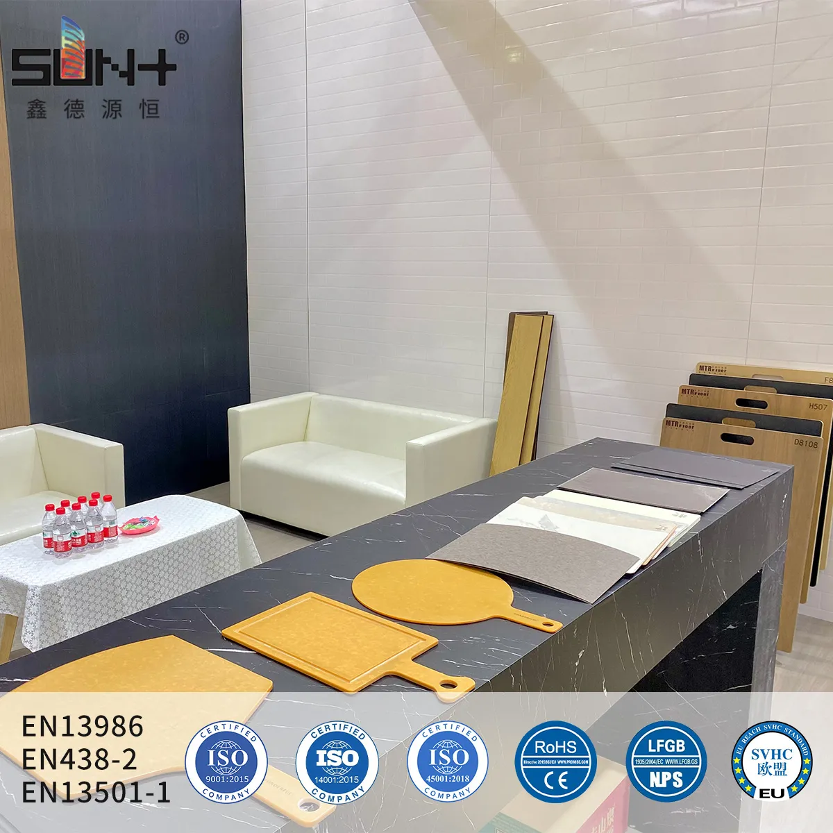 Heavy UseEssential for professional kitchen food preparation surfaces in restaurants, hotels, catering facilities, and institutional kitchens. The FDA-certified surface allows direct food contact for cutting, chopping, and food assembly. Non-porous core prevents absorption of food particles, liquids, or bacteria. Resists staining from food acids (vinegar, citrus, tomato), oils, and spices. Easy to sanitize with commercial kitchen cleaners and disinfectants. Typical installations include prep stations, butcher blocks, pastry tables, and assembly counters. Withstands heavy daily use including knife cuts (self-healing to minor scratches), hot pans (use trivets for >180°C), and frequent cleaning. Meets health department requirements for food service facilities. Common thickness: 12-20mm for standard countertops, 25mm for heavy-duty applications.