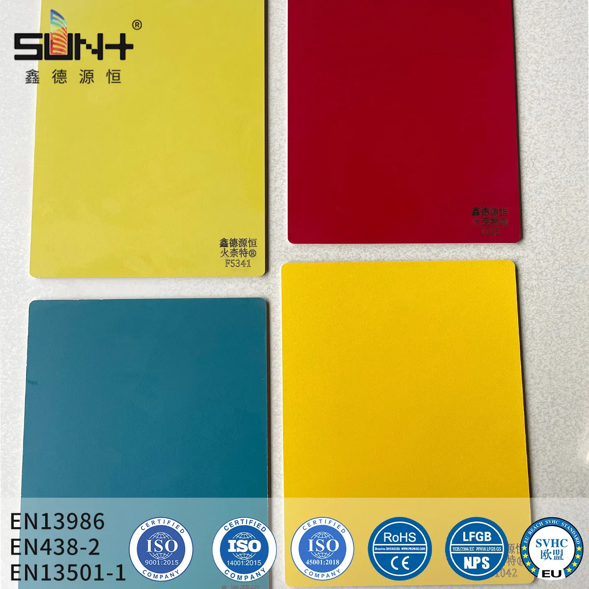 Grade A Fireproof Board represents the highest standard in fire-resistant decorative panels, manufactured using specialized non-combustible core materials and fire-retardant resin systems. The production process involves impregnating multiple layers of specially treated kraft paper with modified phenolic resin containing fire-retardant additives, then laminating under high pressure (120-150 kg/cm²) and temperature (160-180°C). The result is a dense, homogeneous panel with exceptional fire resistance (Class A per GB 8624-2012), achieving flame spread index ≤25 and smoke development ≤450. With ultra-low thermal deformation rate (<0.2% at 200°C), this product maintains structural integrity during fire events. The high-density core (≥1.45 g/cm³) provides excellent impact resistance and dimensional stability. Available in thicknesses from 6mm to 20mm, suitable for high-rise building interiors, public transportation facilities, commercial complexes, and any application requiring strict fire safety compliance. Meets international standards including NFPA 286, EN 13501-1 (Class B-s1,d0), ASTM E84, and Chinese GB 8624-2012 Class A1. Zero halogen formulation ensures low toxicity and minimal smoke generation during combustion.