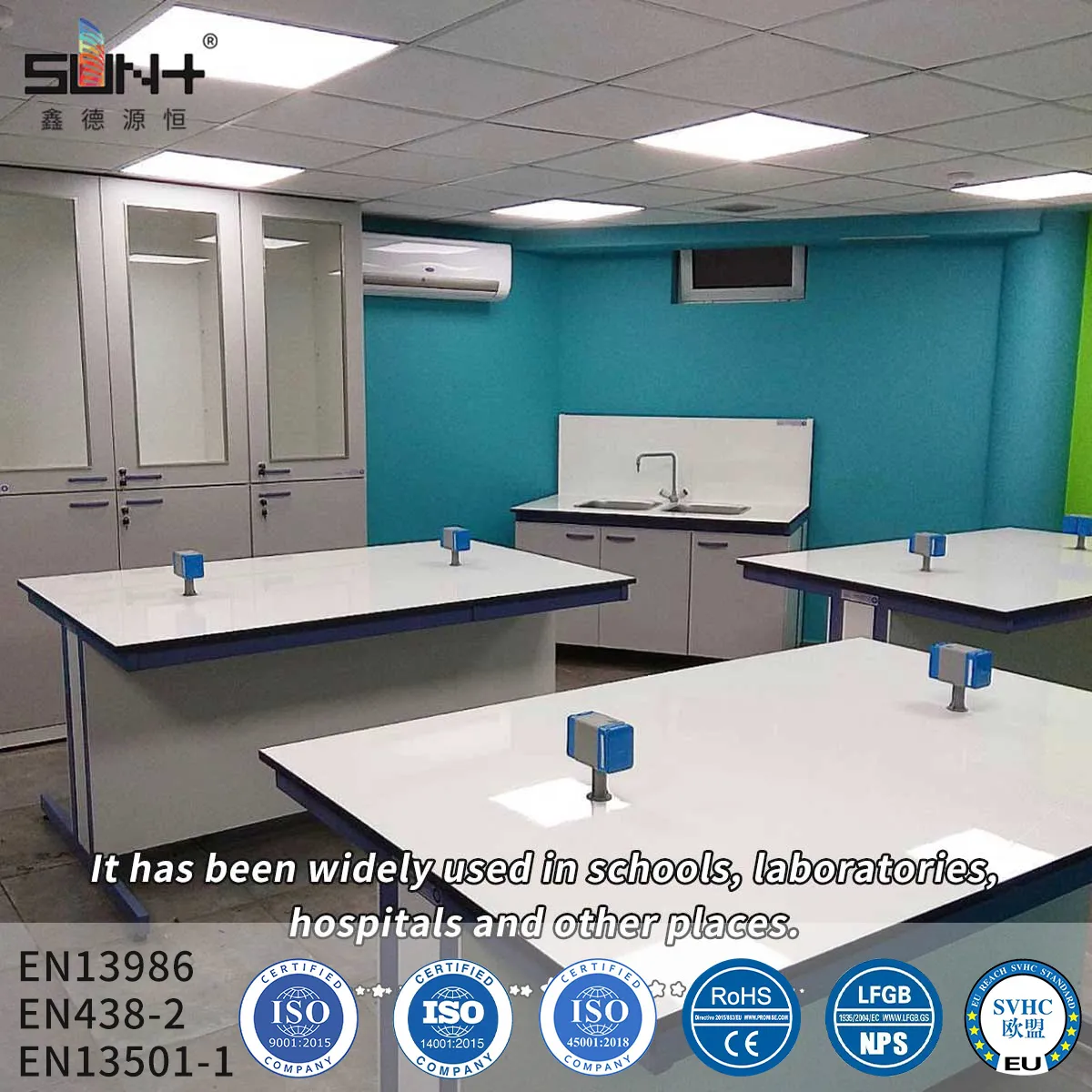 Excellent chemical resistance, antibacterial, ideal for laboratories and healthcare facilities