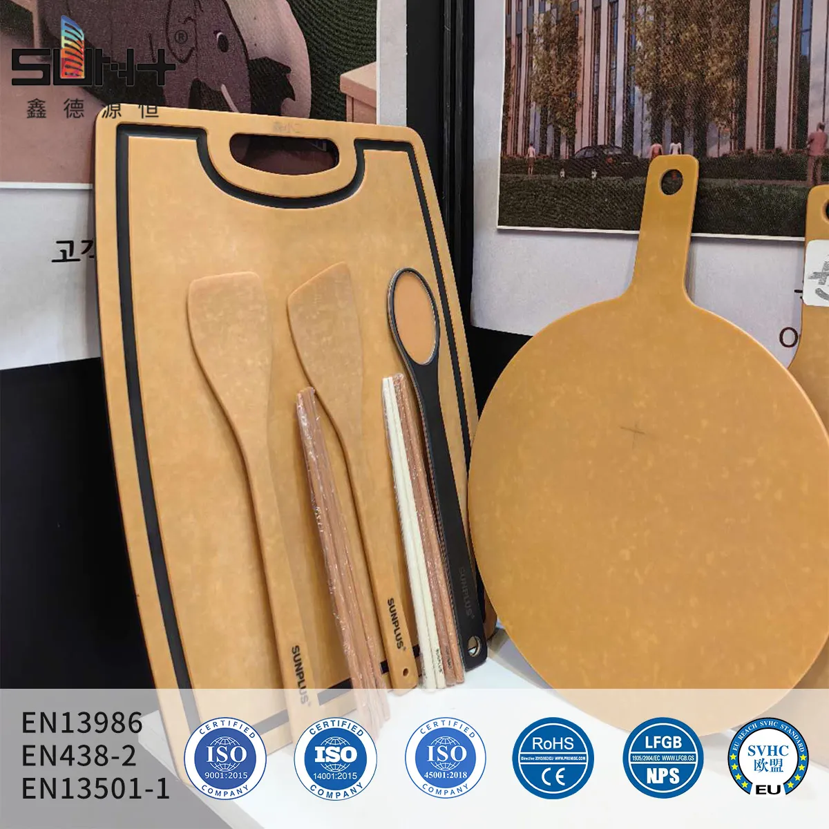 Heavy UseEssential for professional kitchen food preparation surfaces in restaurants, hotels, catering facilities, and institutional kitchens. The FDA-certified surface allows direct food contact for cutting, chopping, and food assembly. Non-porous core prevents absorption of food particles, liquids, or bacteria. Resists staining from food acids (vinegar, citrus, tomato), oils, and spices. Easy to sanitize with commercial kitchen cleaners and disinfectants. Typical installations include prep stations, butcher blocks, pastry tables, and assembly counters. Withstands heavy daily use including knife cuts (self-healing to minor scratches), hot pans (use trivets for >180°C), and frequent cleaning. Meets health department requirements for food service facilities. Common thickness: 12-20mm for standard countertops, 25mm for heavy-duty applications.