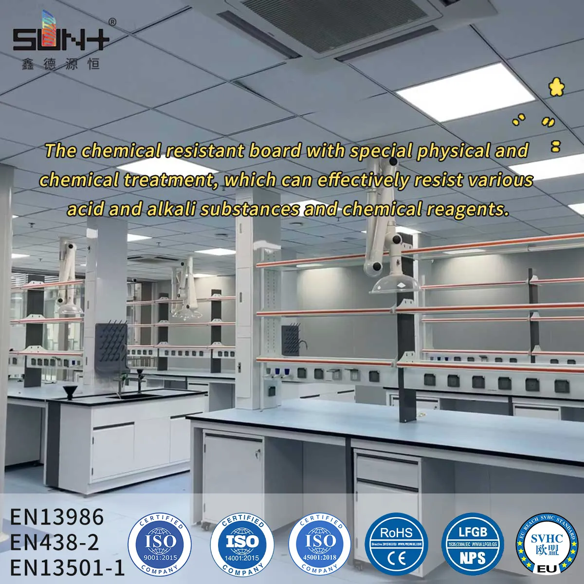 Excellent chemical resistance, antibacterial, ideal for laboratories and healthcare facilities